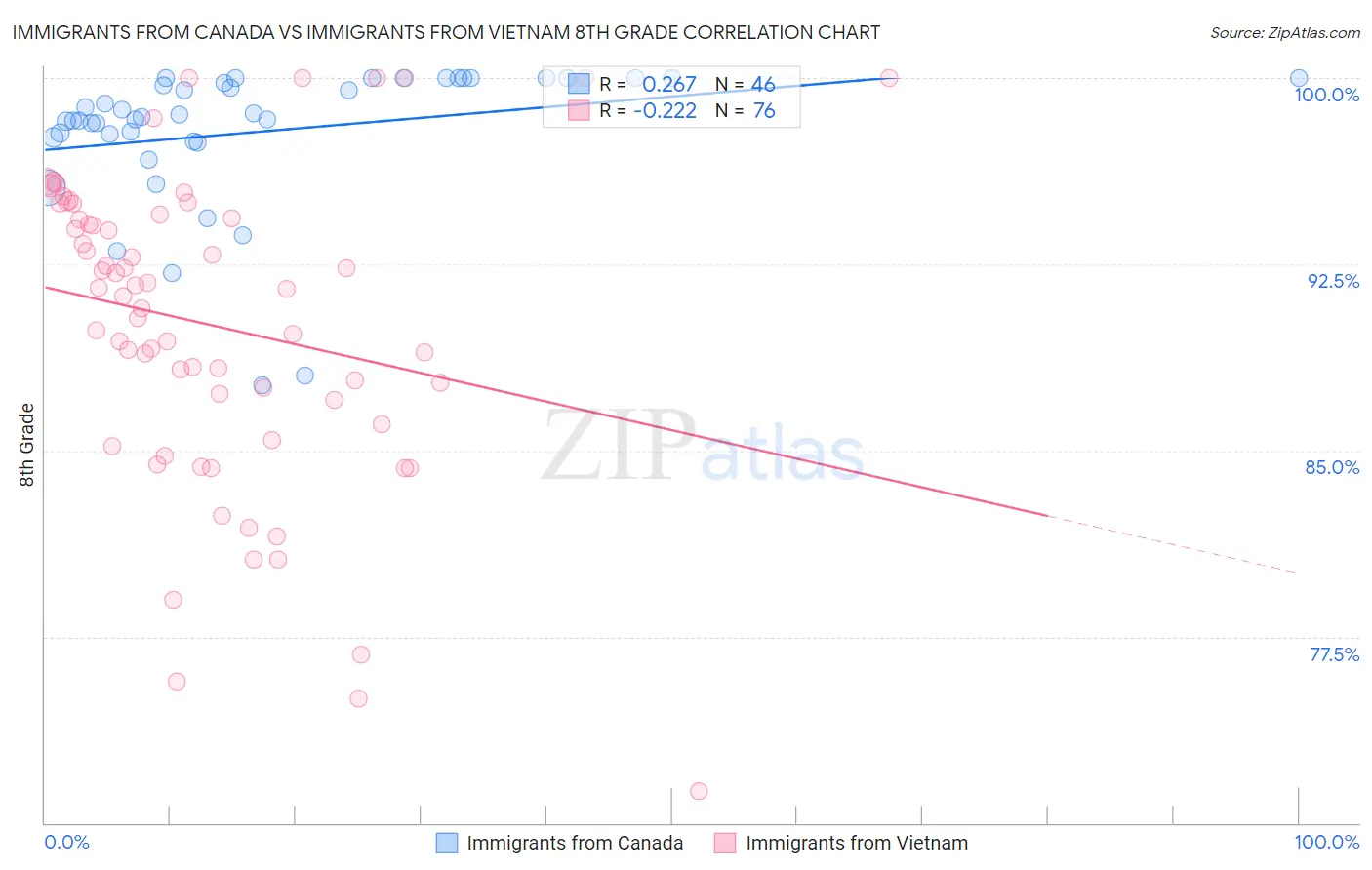 Immigrants from Canada vs Immigrants from Vietnam 8th Grade Correlation Chart