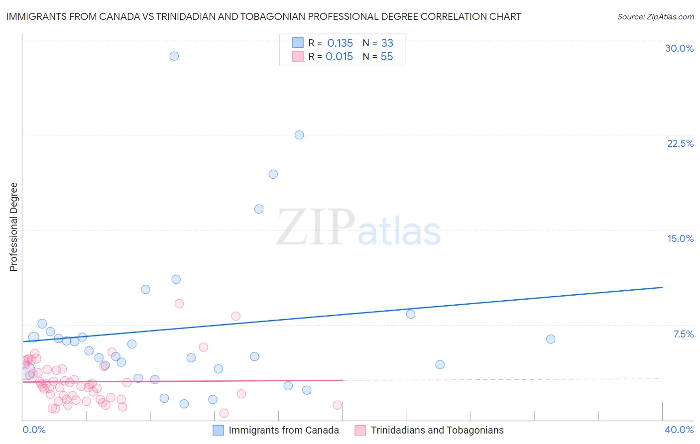 Immigrants from Canada vs Trinidadian and Tobagonian Professional Degree Correlation Chart