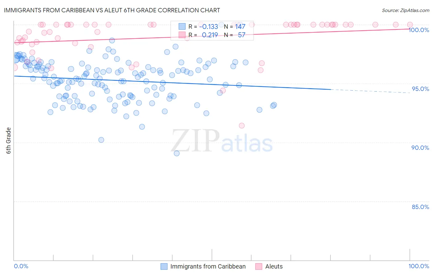 Immigrants from Caribbean vs Aleut 6th Grade Correlation Chart