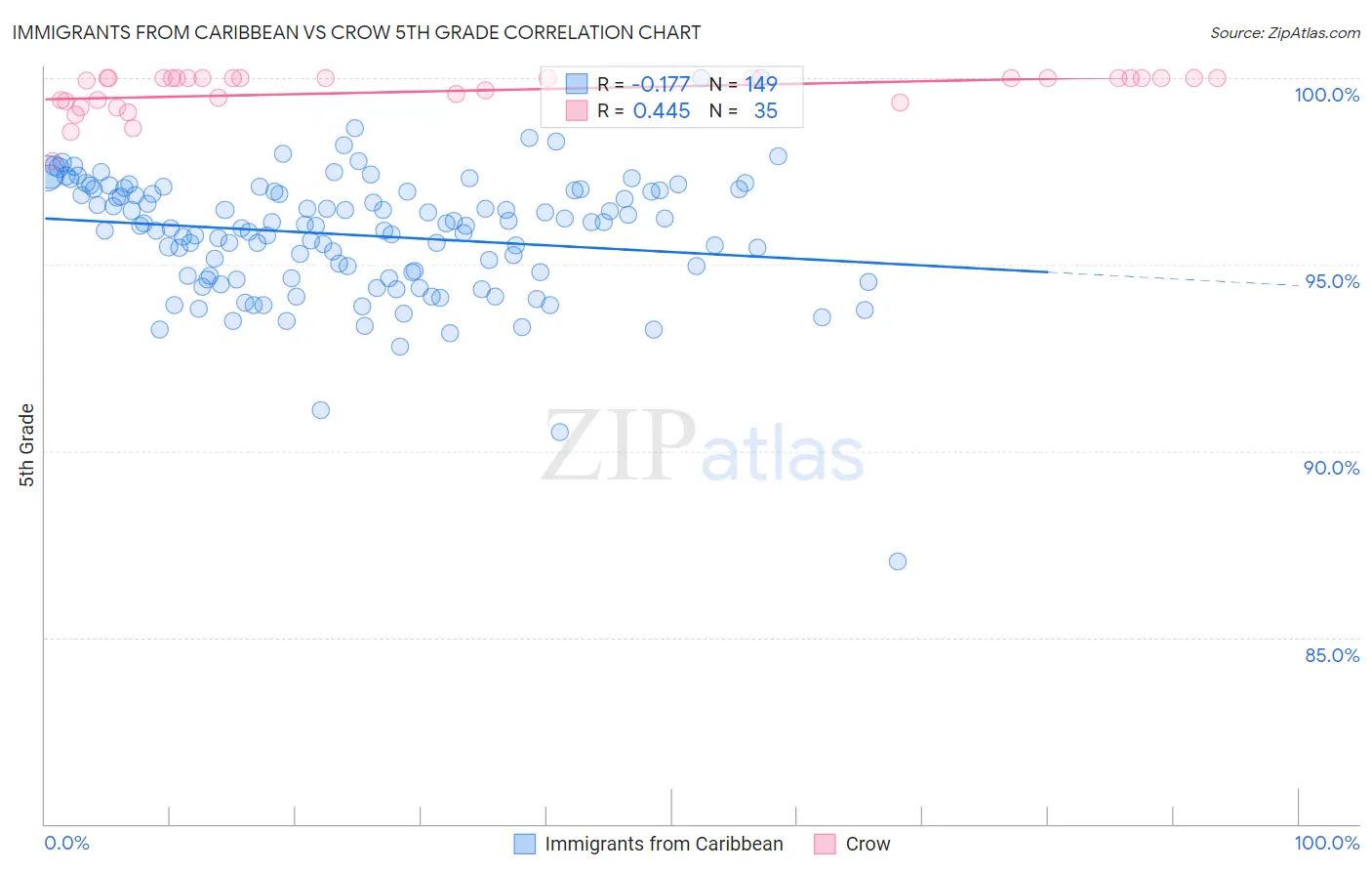 Immigrants from Caribbean vs Crow 5th Grade Correlation Chart