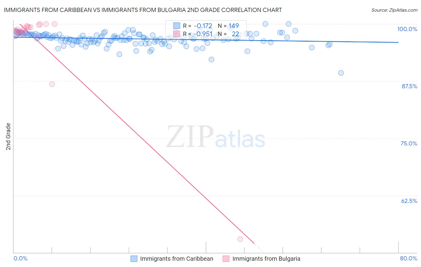 Immigrants from Caribbean vs Immigrants from Bulgaria 2nd Grade Correlation Chart