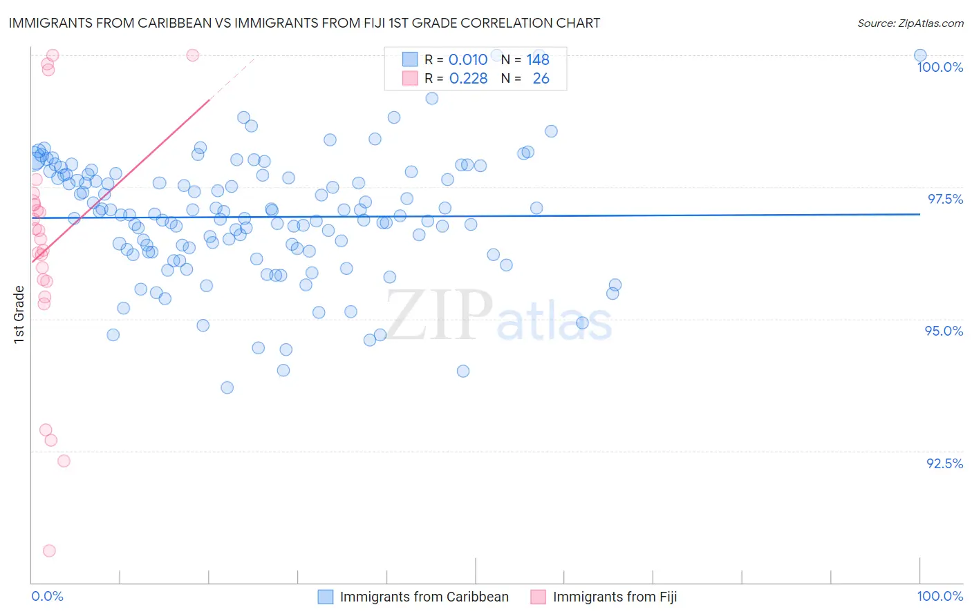 Immigrants from Caribbean vs Immigrants from Fiji 1st Grade Correlation Chart