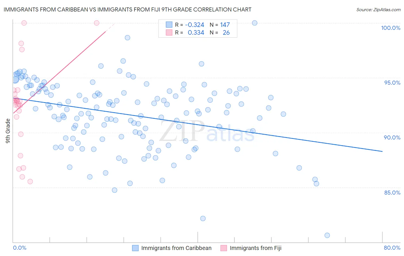 Immigrants from Caribbean vs Immigrants from Fiji 9th Grade Correlation Chart