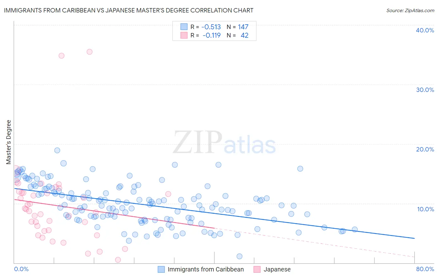 Immigrants from Caribbean vs Japanese Master's Degree Correlation Chart