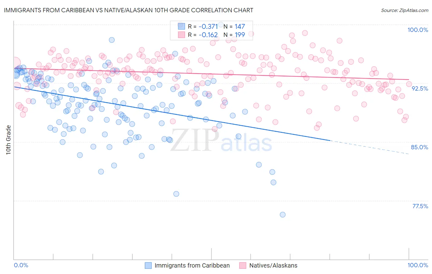 Immigrants from Caribbean vs Native/Alaskan 10th Grade