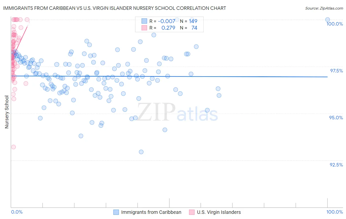 Immigrants from Caribbean vs U.S. Virgin Islander Nursery School Correlation Chart