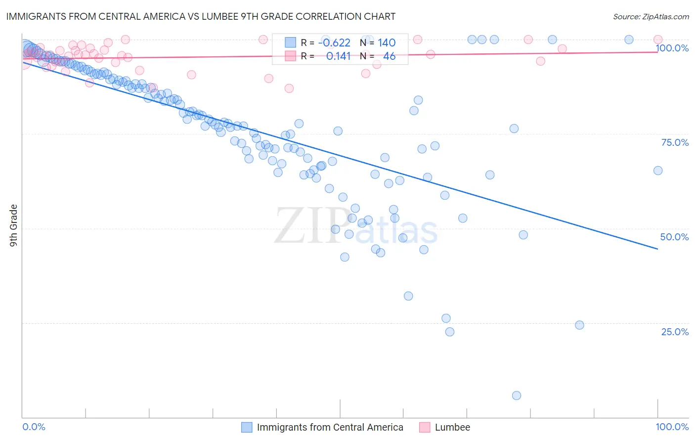 Immigrants from Central America vs Lumbee 9th Grade Correlation Chart
