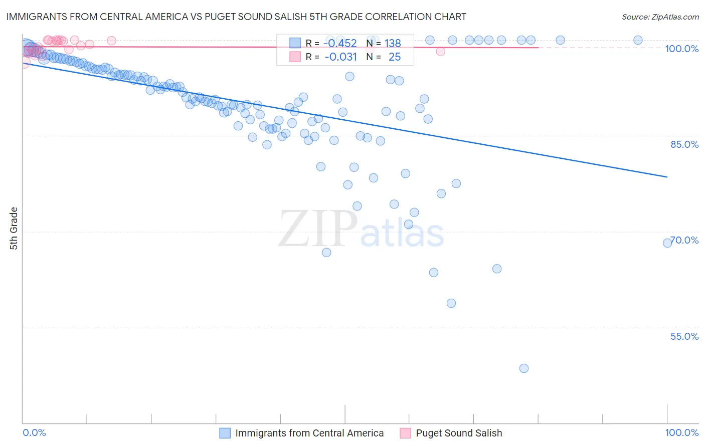 Immigrants from Central America vs Puget Sound Salish 5th Grade Correlation Chart