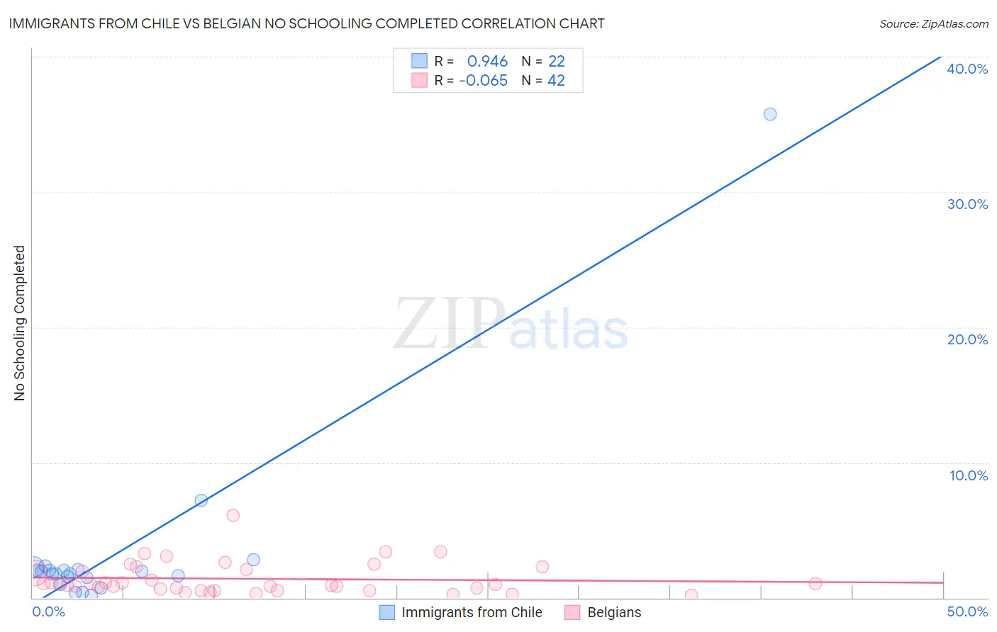 Immigrants from Chile vs Belgian No Schooling Completed Correlation Chart