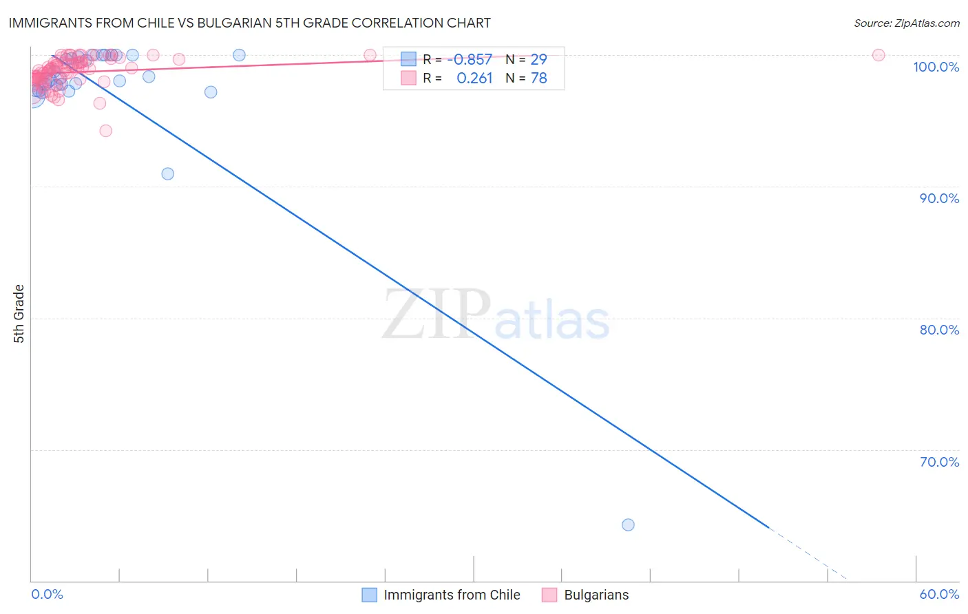 Immigrants from Chile vs Bulgarian 5th Grade Correlation Chart