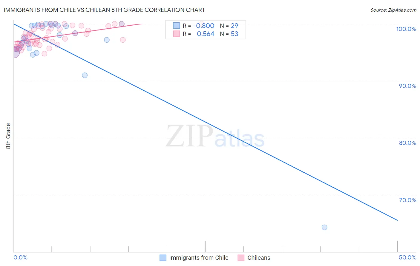 Immigrants from Chile vs Chilean 8th Grade Correlation Chart