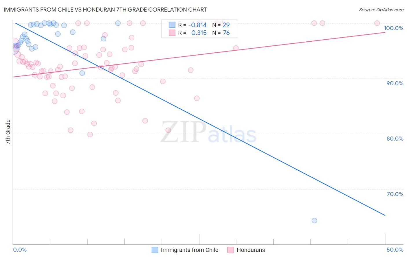Immigrants from Chile vs Honduran 7th Grade Correlation Chart