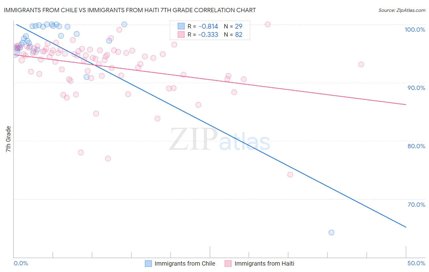 Immigrants from Chile vs Immigrants from Haiti 7th Grade Correlation Chart