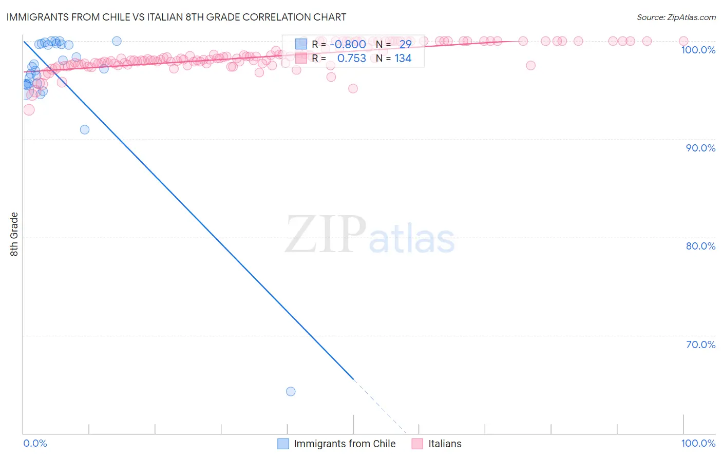Immigrants from Chile vs Italian 8th Grade Correlation Chart