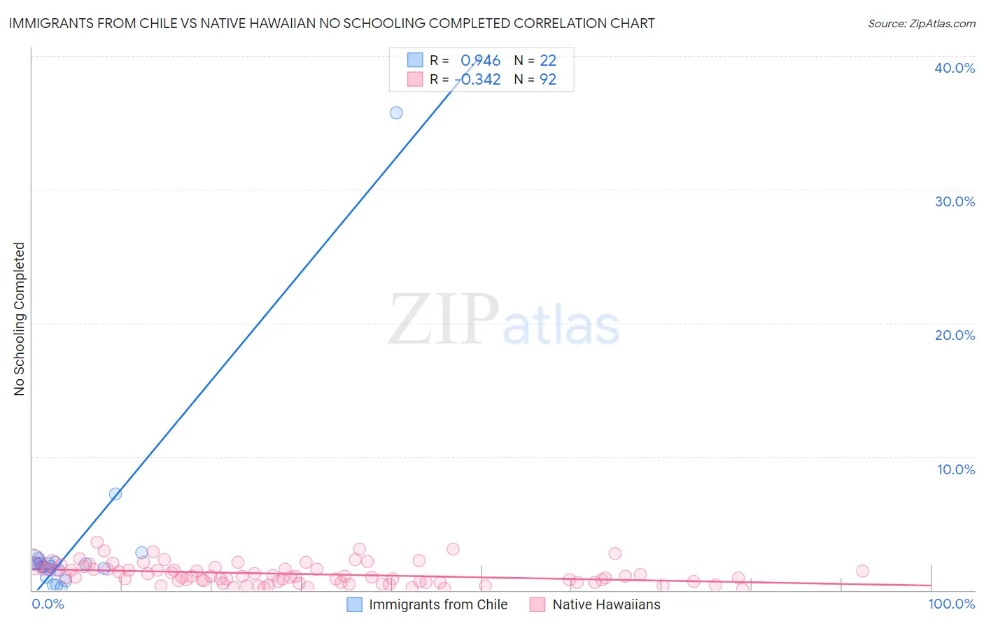 Immigrants from Chile vs Native Hawaiian No Schooling Completed