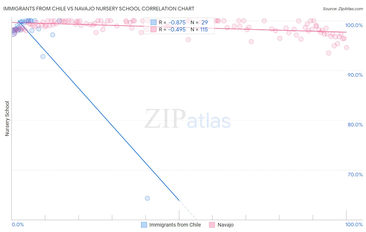 Immigrants from Chile vs Navajo Nursery School Correlation Chart