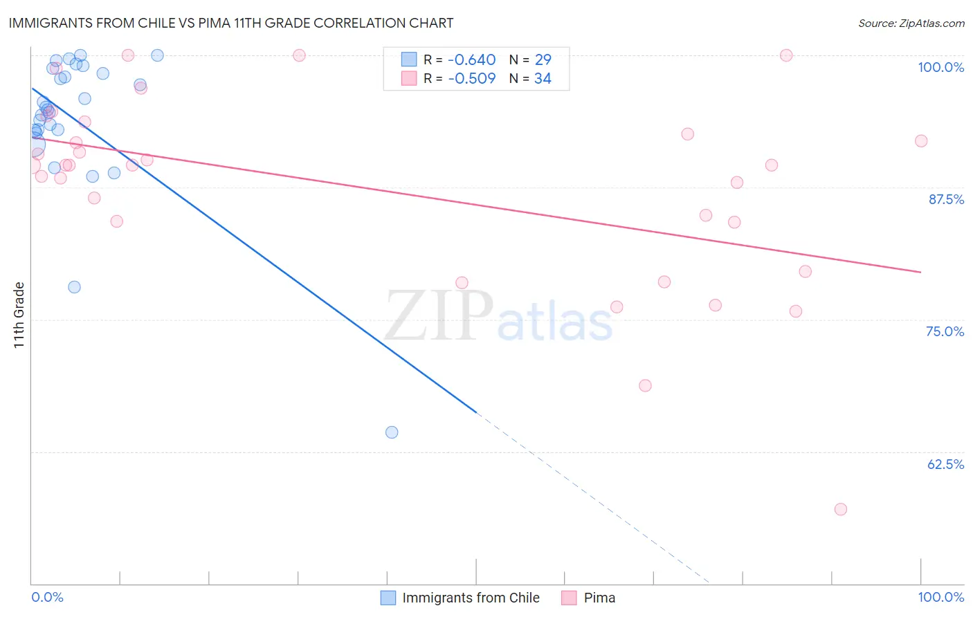 Immigrants from Chile vs Pima 11th Grade Correlation Chart