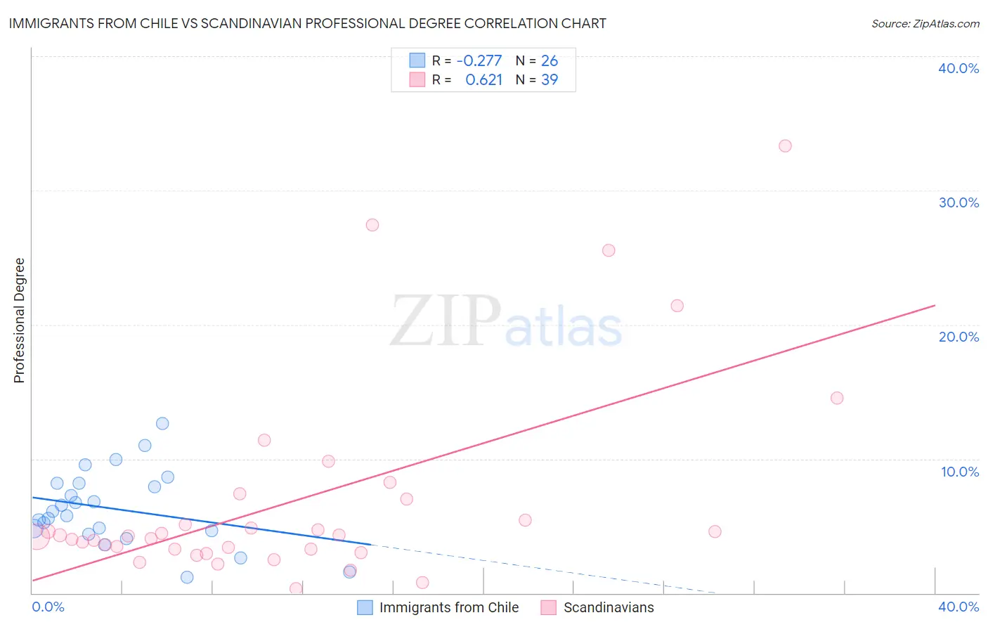 Immigrants from Chile vs Scandinavian Professional Degree Correlation Chart