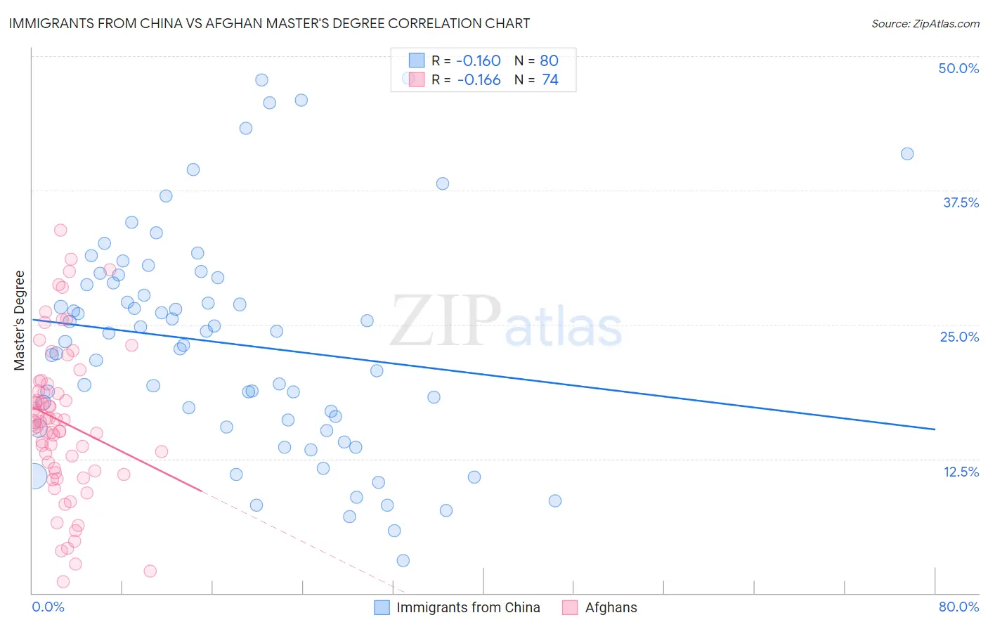 Immigrants from China vs Afghan Master's Degree Correlation Chart