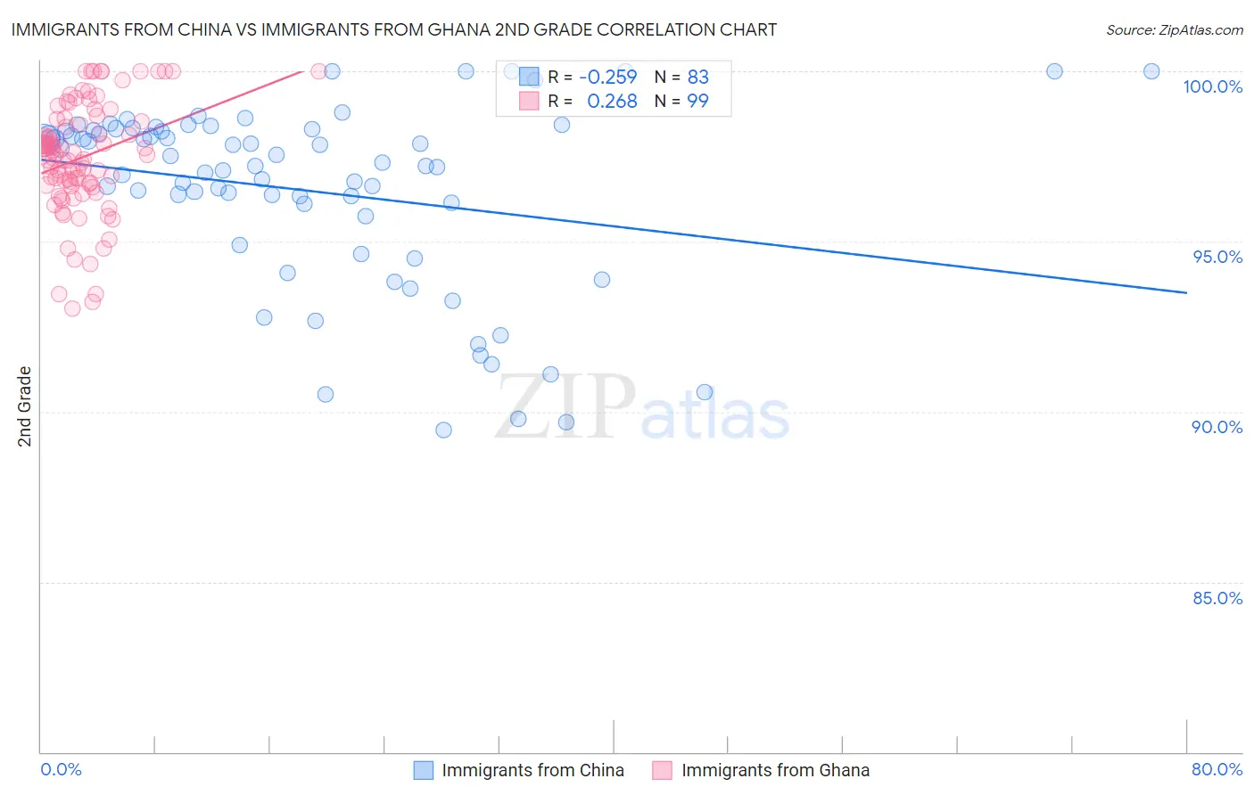 Immigrants from China vs Immigrants from Ghana 2nd Grade Correlation Chart