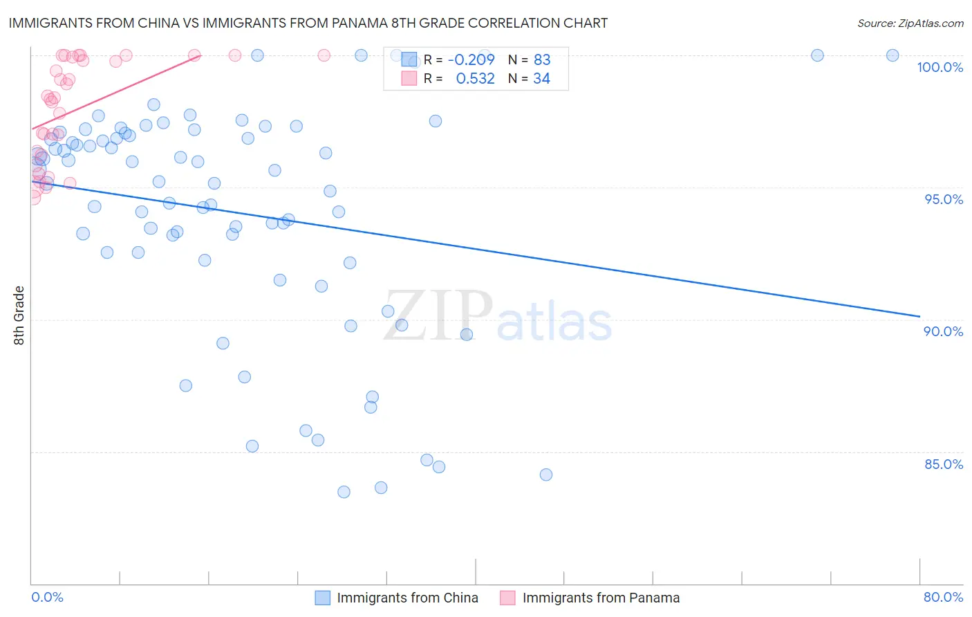 Immigrants from China vs Immigrants from Panama 8th Grade Correlation Chart