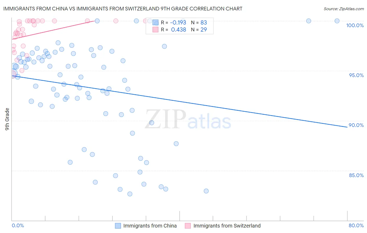 Immigrants from China vs Immigrants from Switzerland 9th Grade Correlation Chart