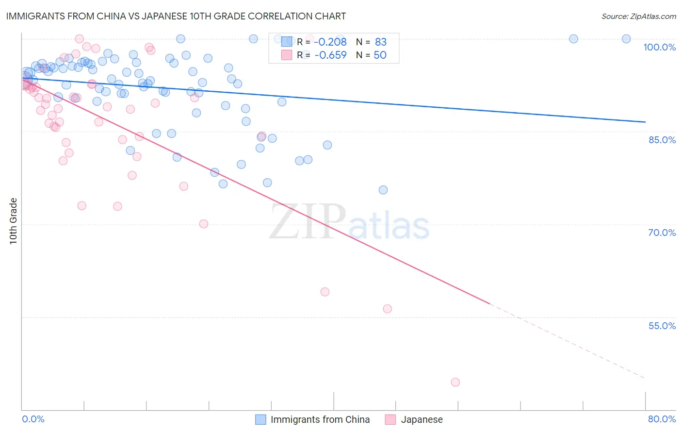 Immigrants from China vs Japanese 10th Grade Correlation Chart
