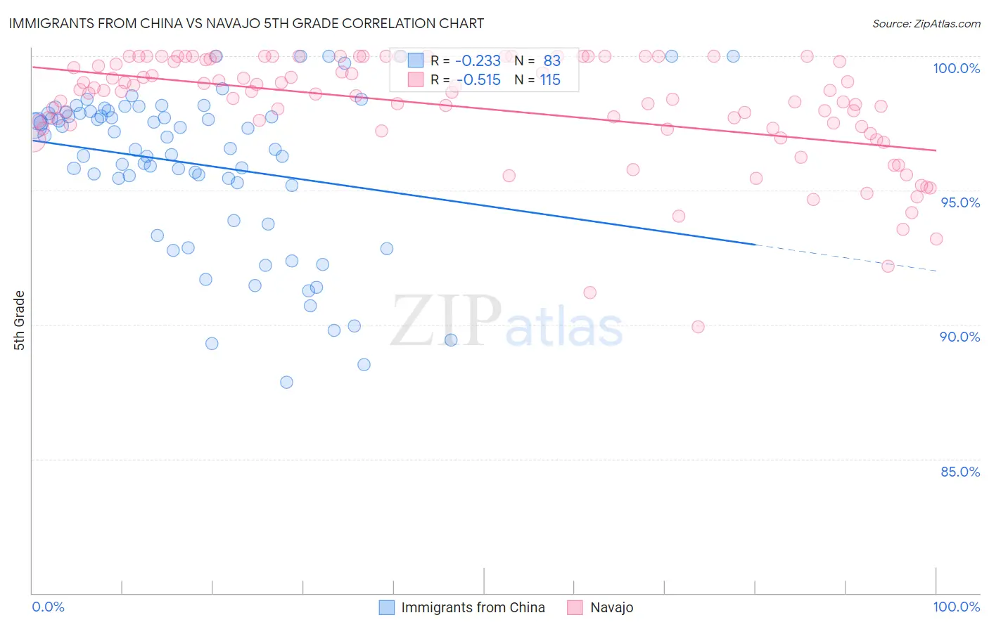 Immigrants from China vs Navajo 5th Grade Correlation Chart