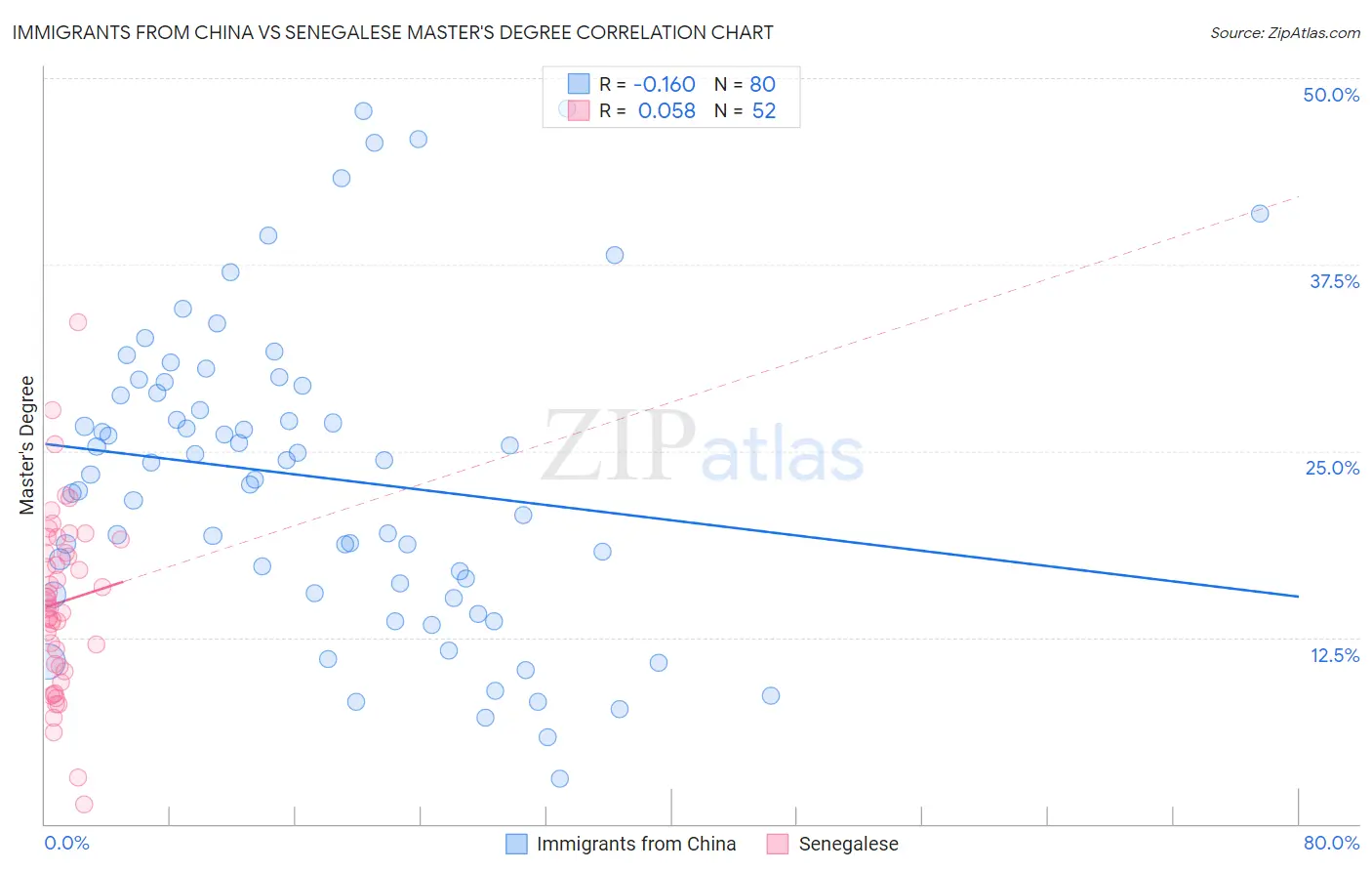 Immigrants from China vs Senegalese Master's Degree Correlation Chart