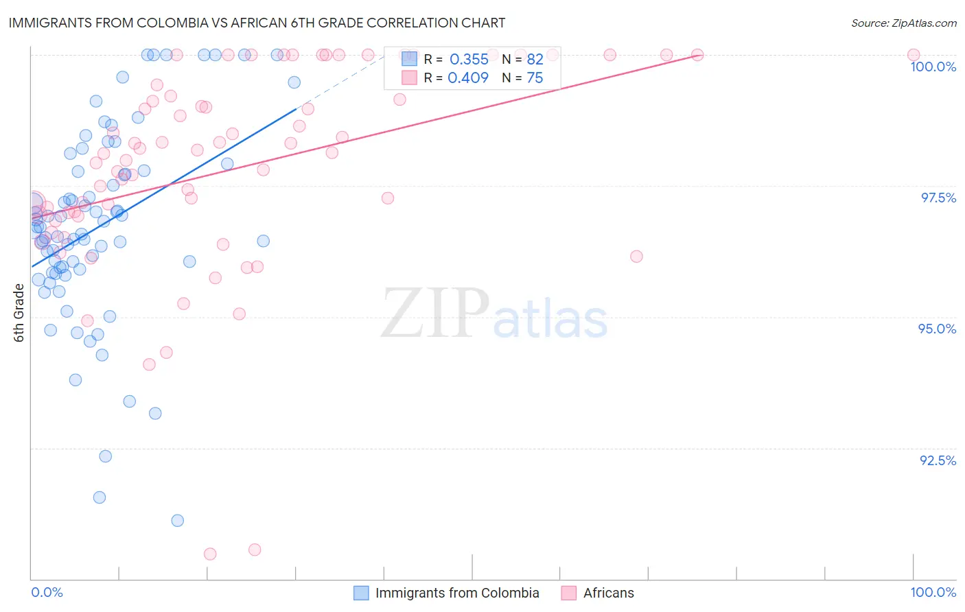 Immigrants from Colombia vs African 6th Grade Correlation Chart
