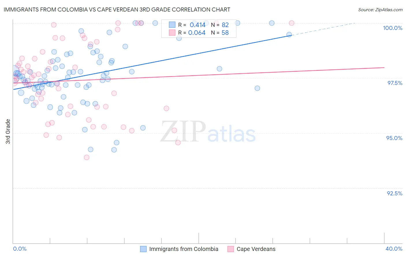 Immigrants from Colombia vs Cape Verdean 3rd Grade Correlation Chart