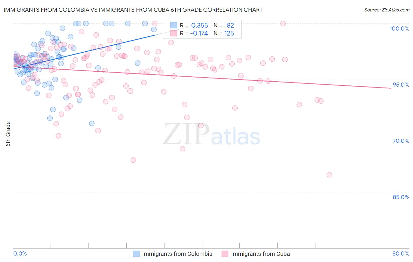 Immigrants from Colombia vs Immigrants from Cuba 6th Grade Correlation Chart