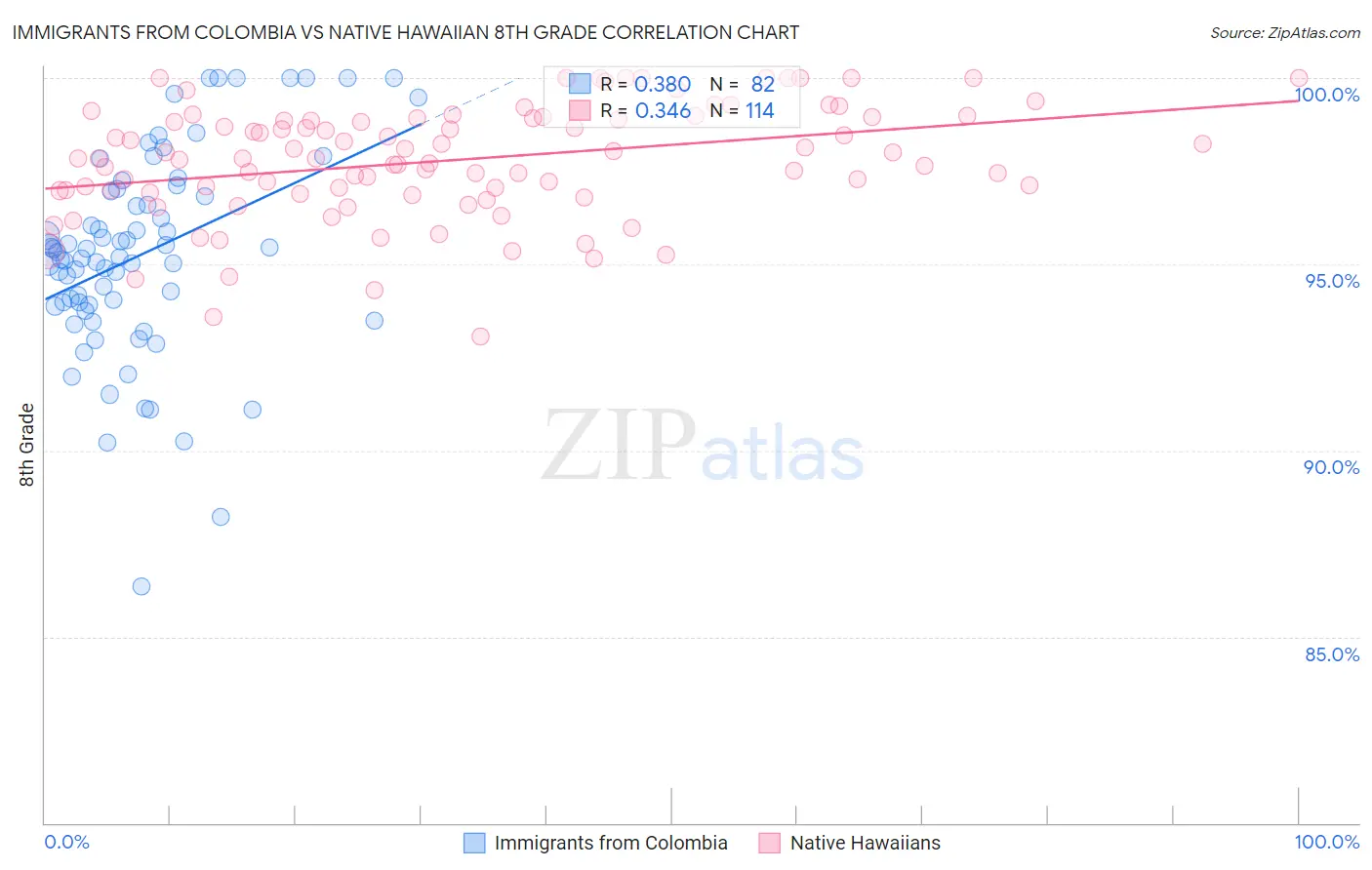 Immigrants from Colombia vs Native Hawaiian 8th Grade Correlation Chart
