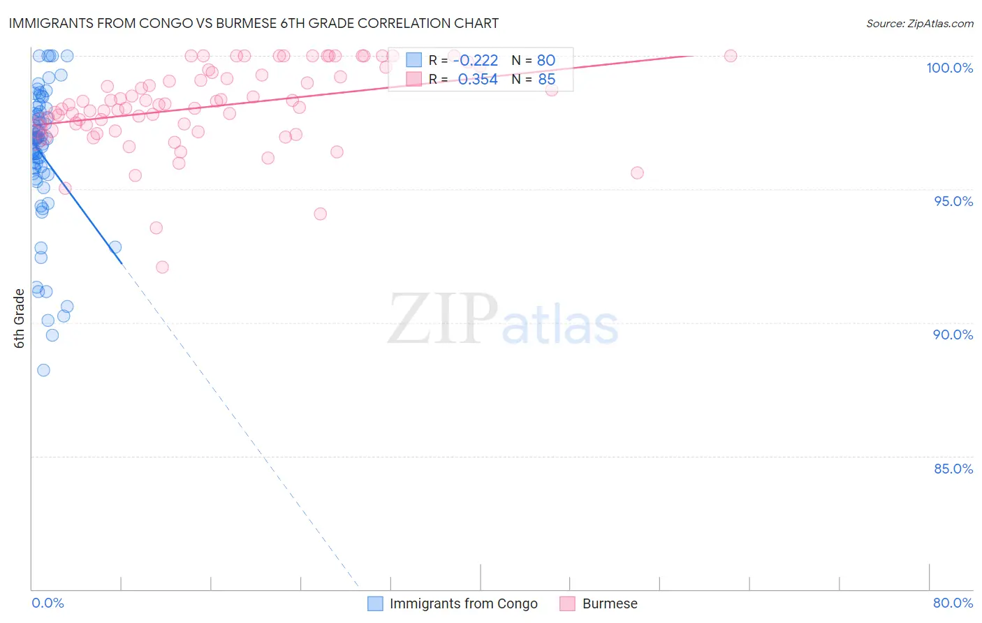 Immigrants from Congo vs Burmese 6th Grade Correlation Chart