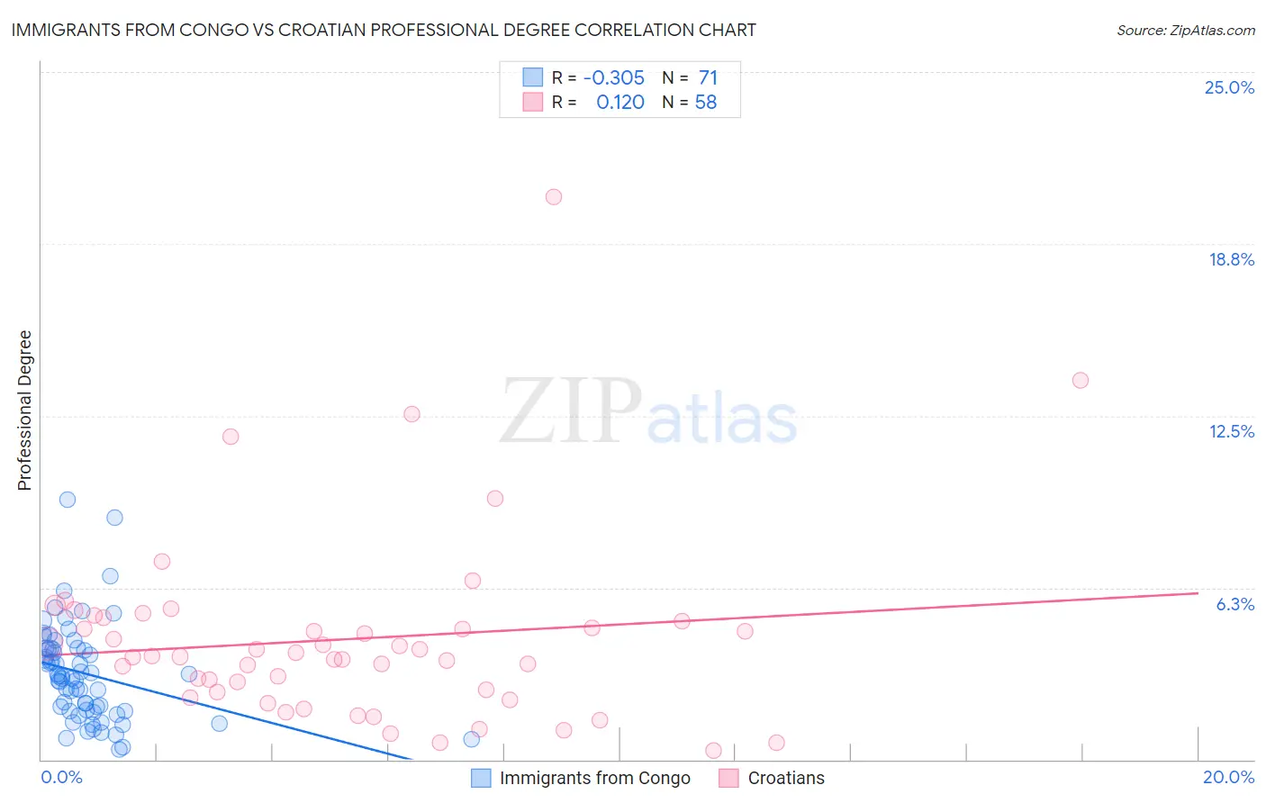 Immigrants from Congo vs Croatian Professional Degree Correlation Chart