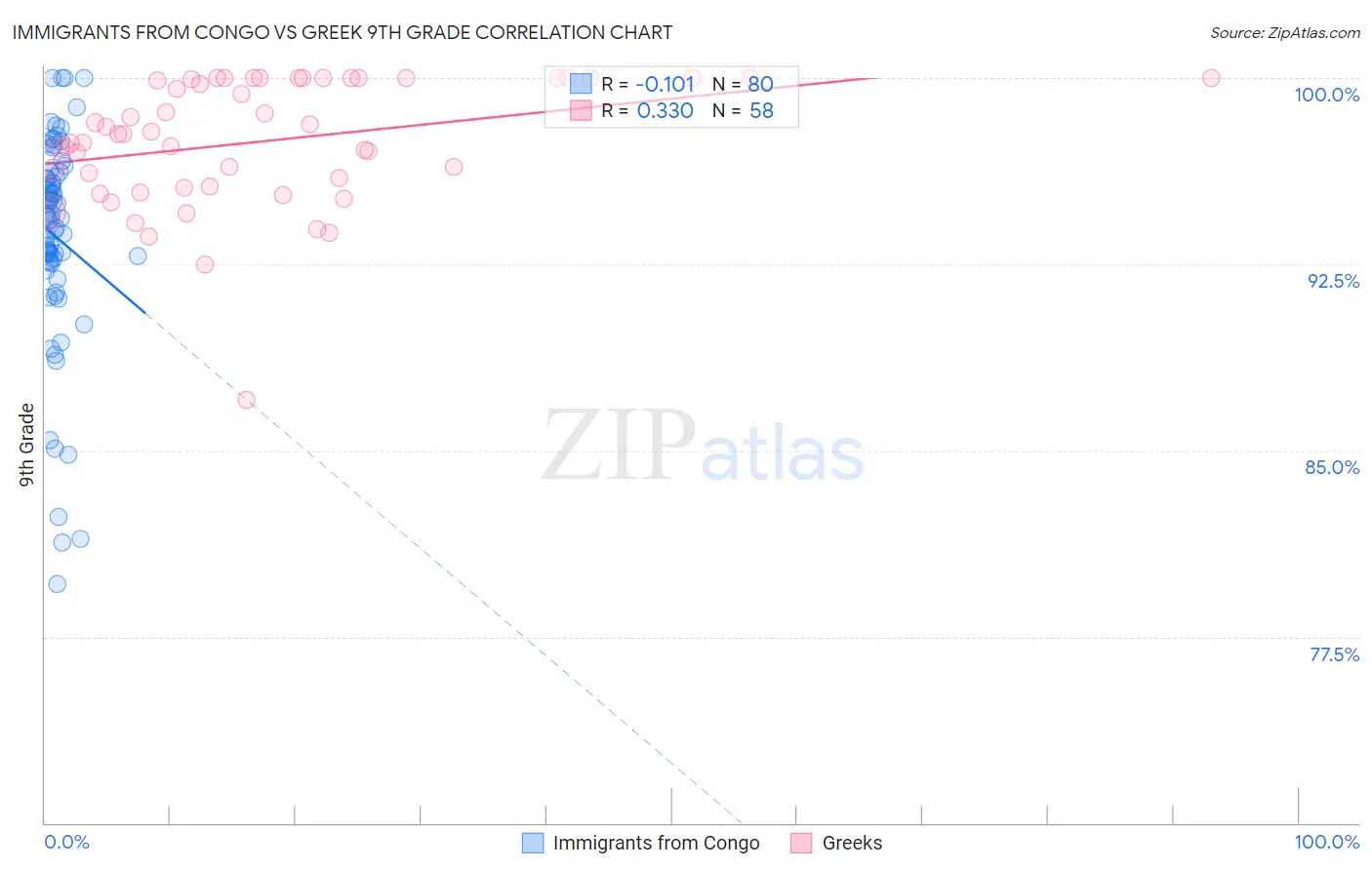 Immigrants from Congo vs Greek 9th Grade Correlation Chart