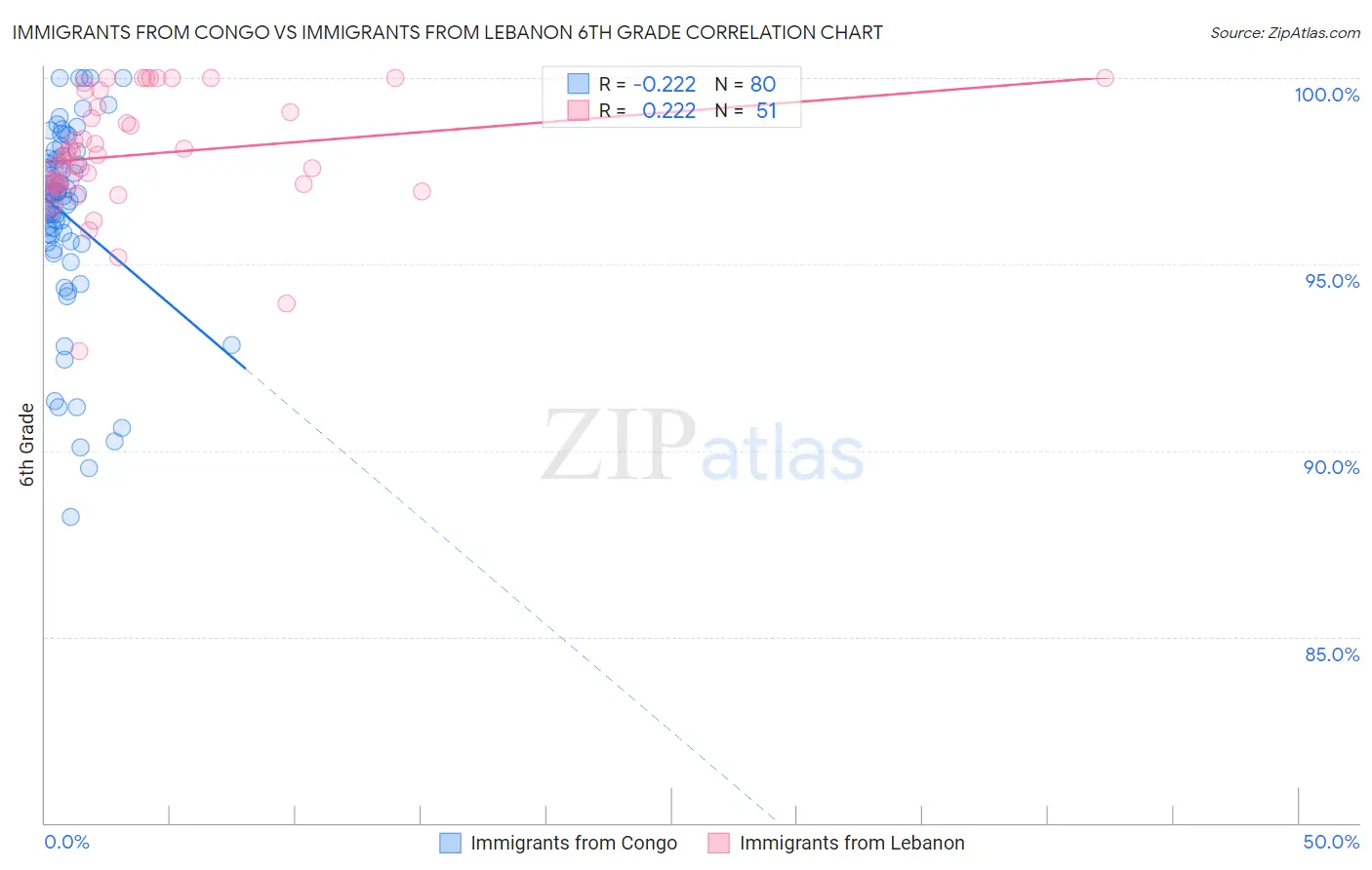 Immigrants from Congo vs Immigrants from Lebanon 6th Grade Correlation Chart