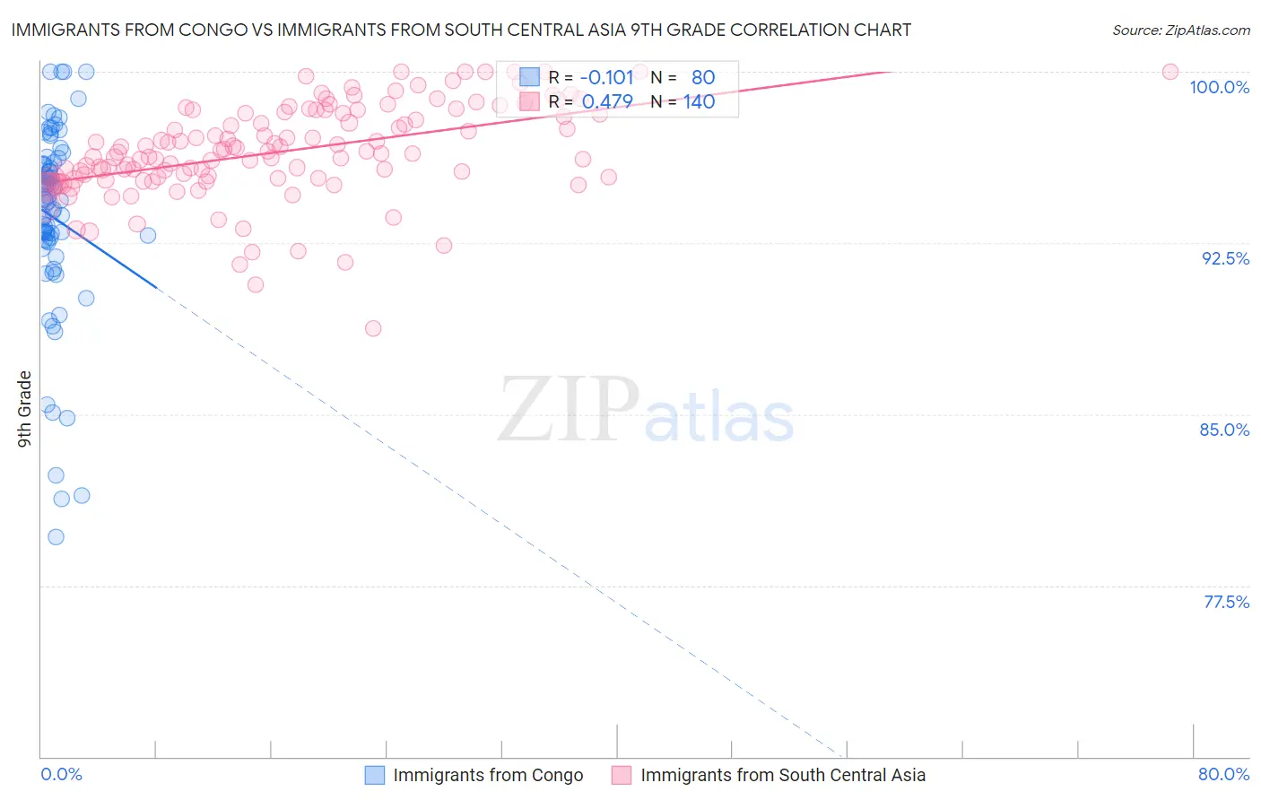 Immigrants from Congo vs Immigrants from South Central Asia 9th Grade Correlation Chart