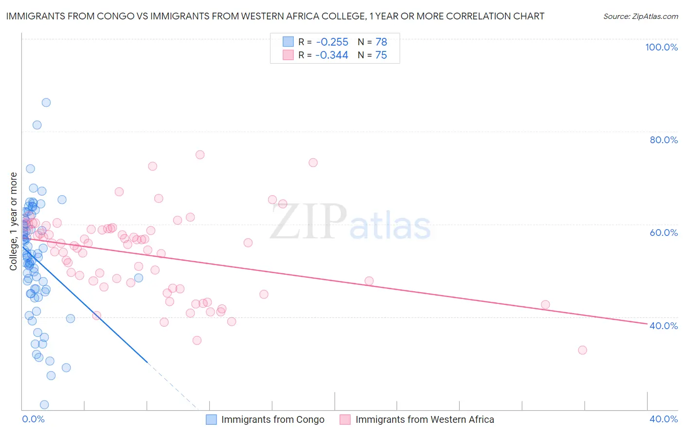 Immigrants from Congo vs Immigrants from Western Africa College, 1 year or more Correlation Chart