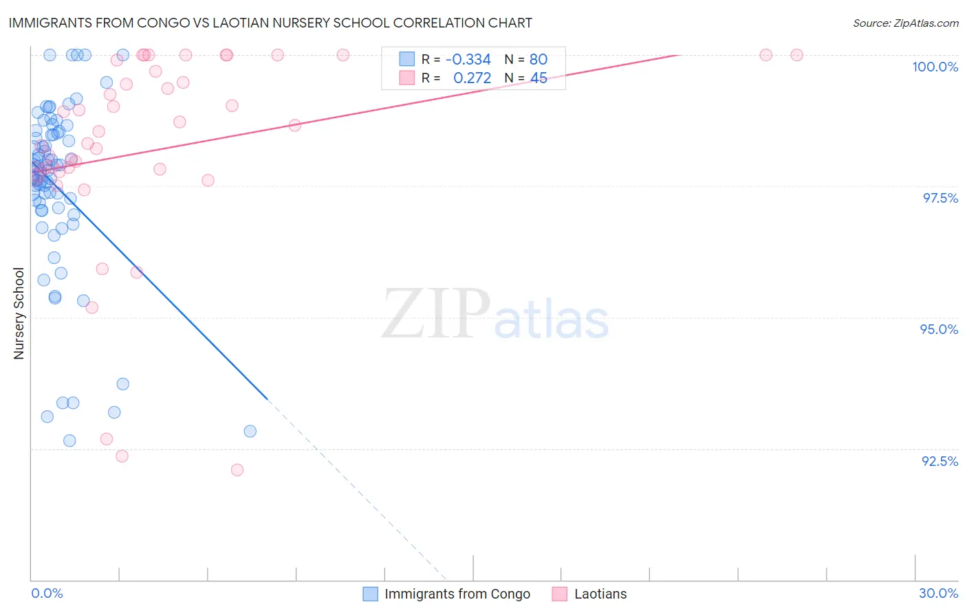 Immigrants from Congo vs Laotian Nursery School Correlation Chart