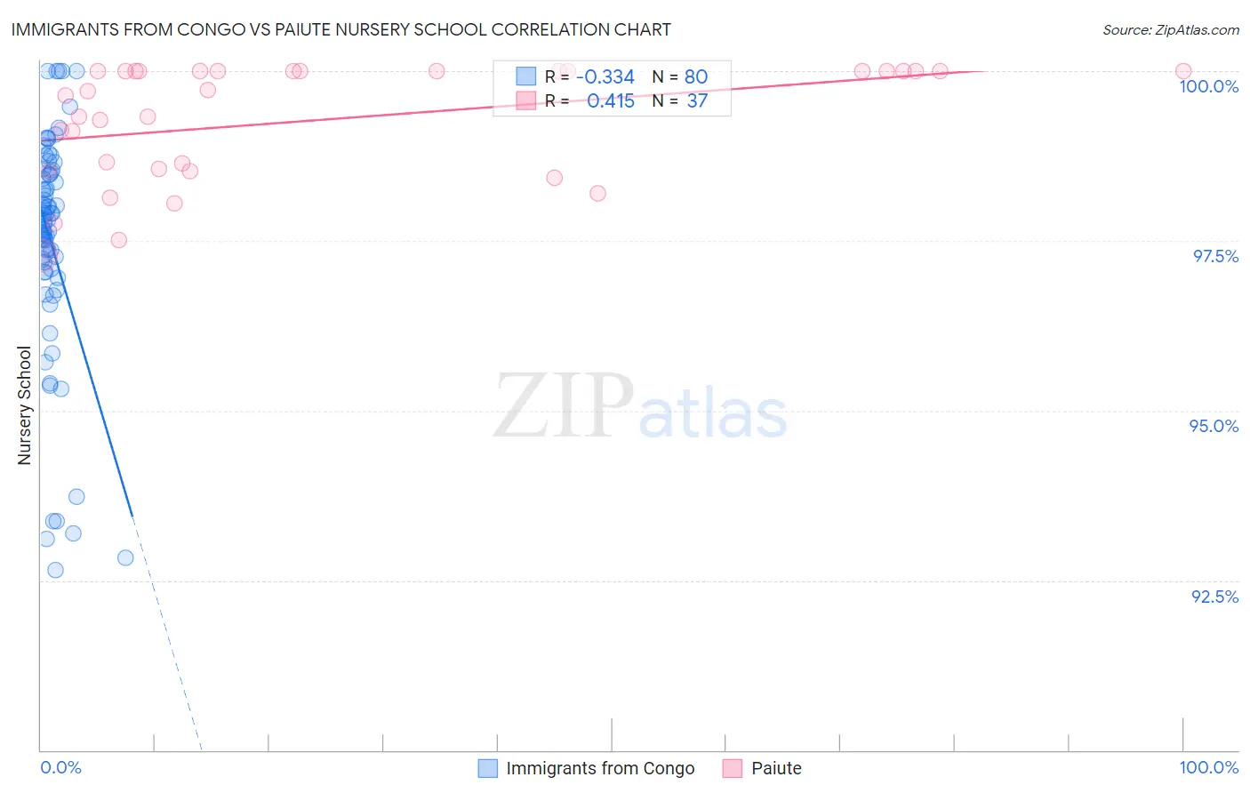 Immigrants from Congo vs Paiute Nursery School Correlation Chart