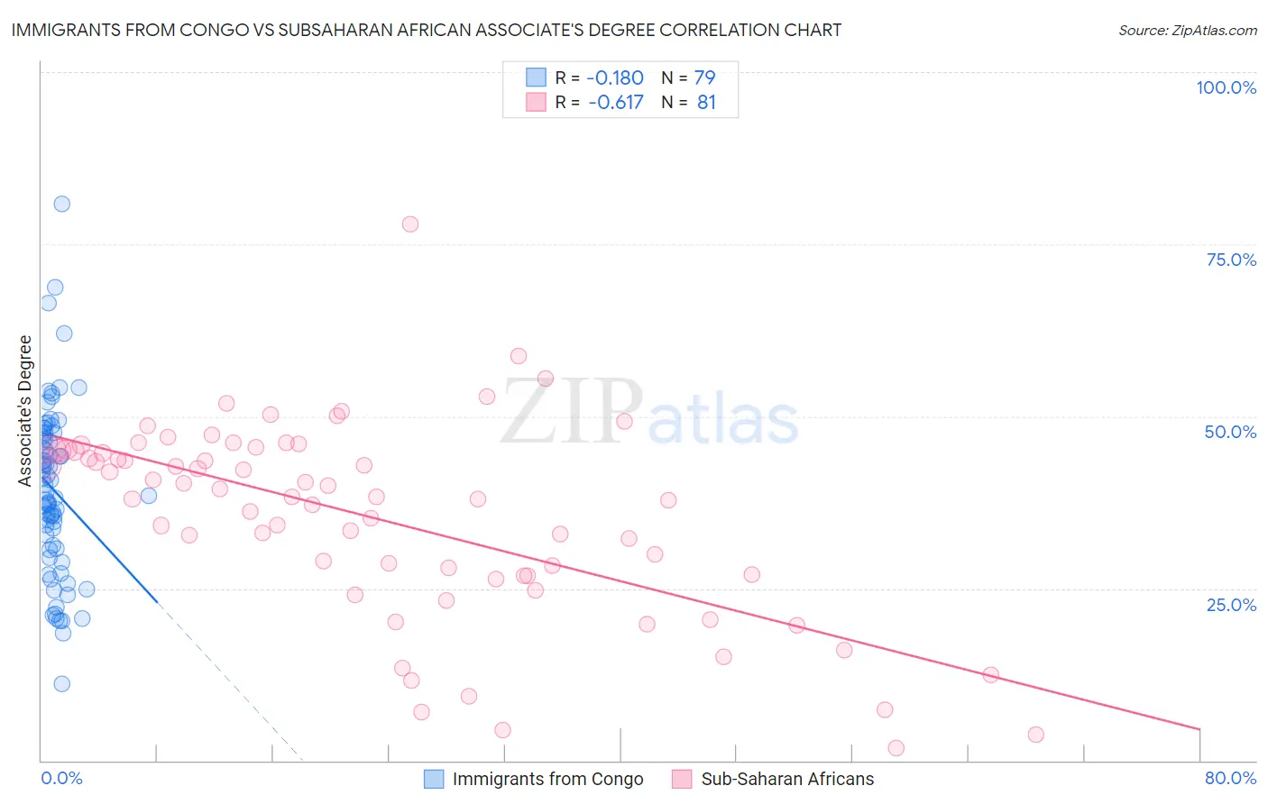 Immigrants from Congo vs Subsaharan African Associate's Degree Correlation Chart