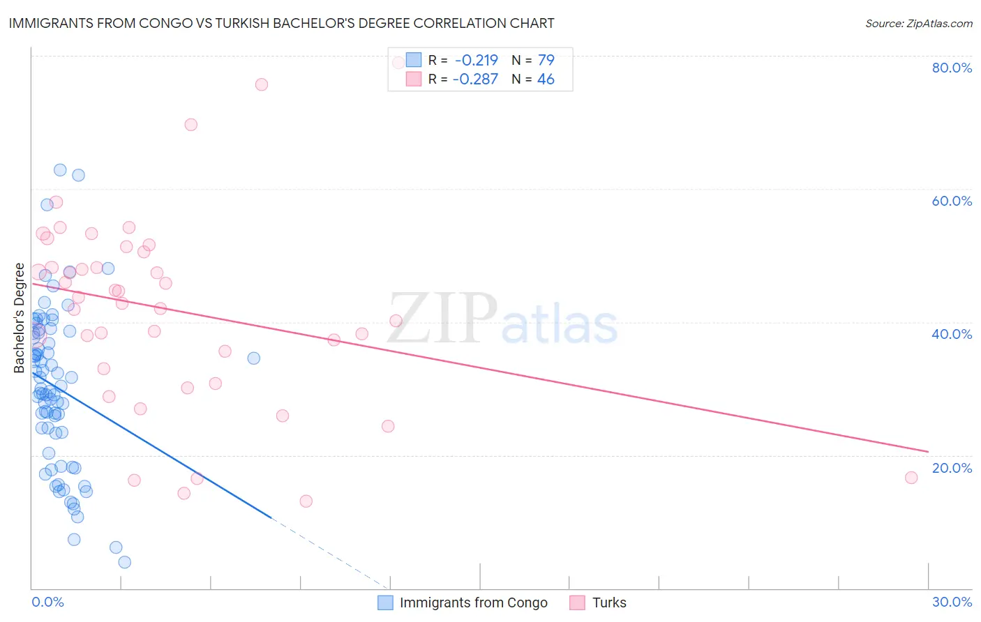 Immigrants from Congo vs Turkish Bachelor's Degree Correlation Chart