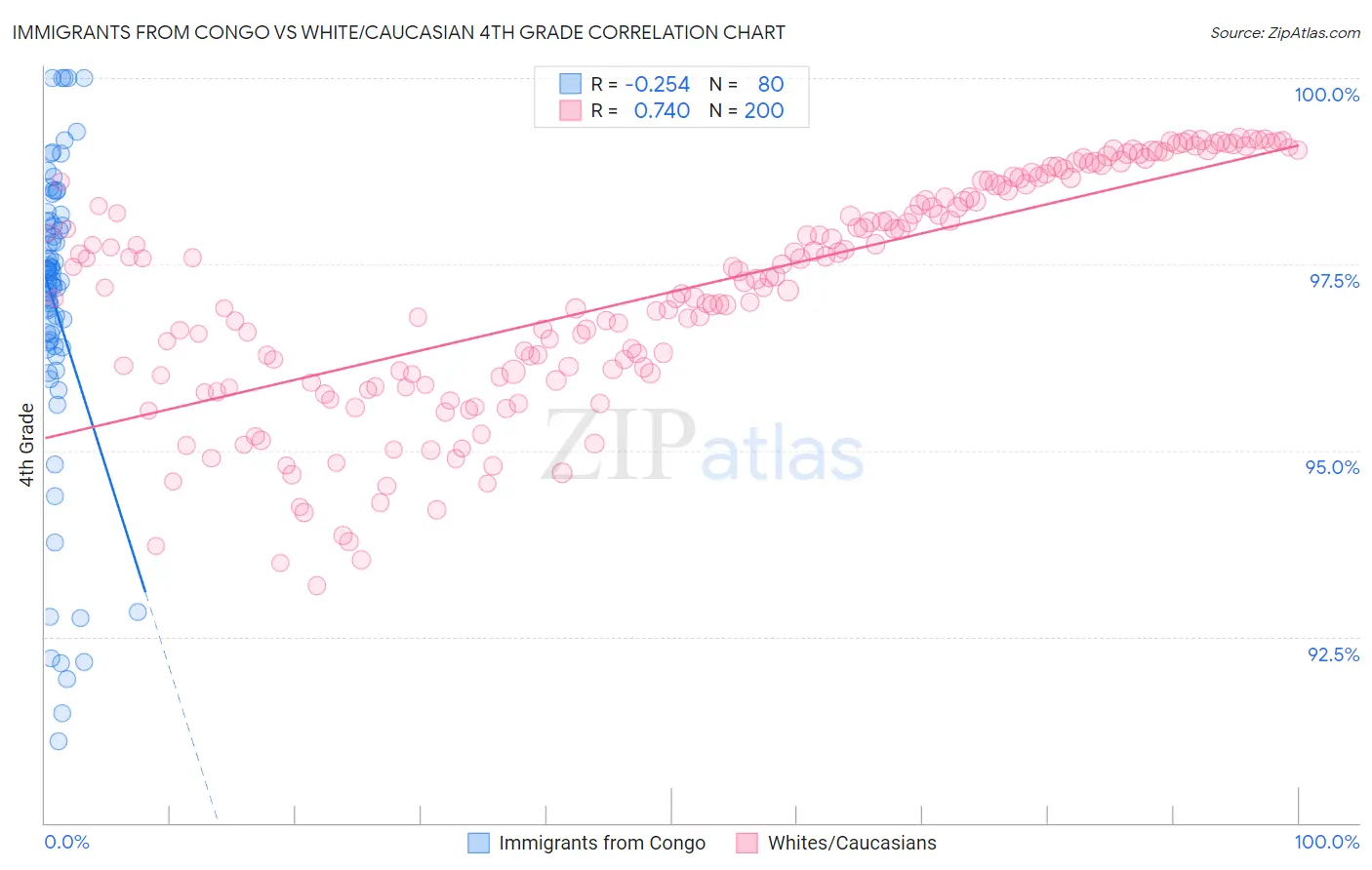 Immigrants from Congo vs White/Caucasian 4th Grade Correlation Chart