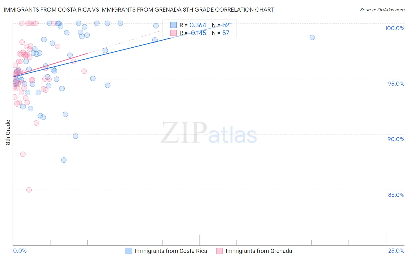 Immigrants from Costa Rica vs Immigrants from Grenada 8th Grade Correlation Chart