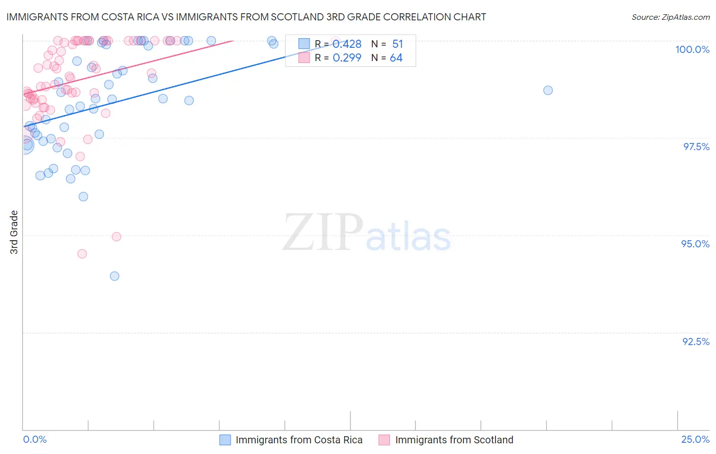 Immigrants from Costa Rica vs Immigrants from Scotland 3rd Grade Correlation Chart