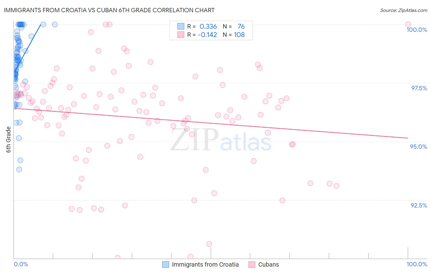 Immigrants from Croatia vs Cuban 6th Grade Correlation Chart