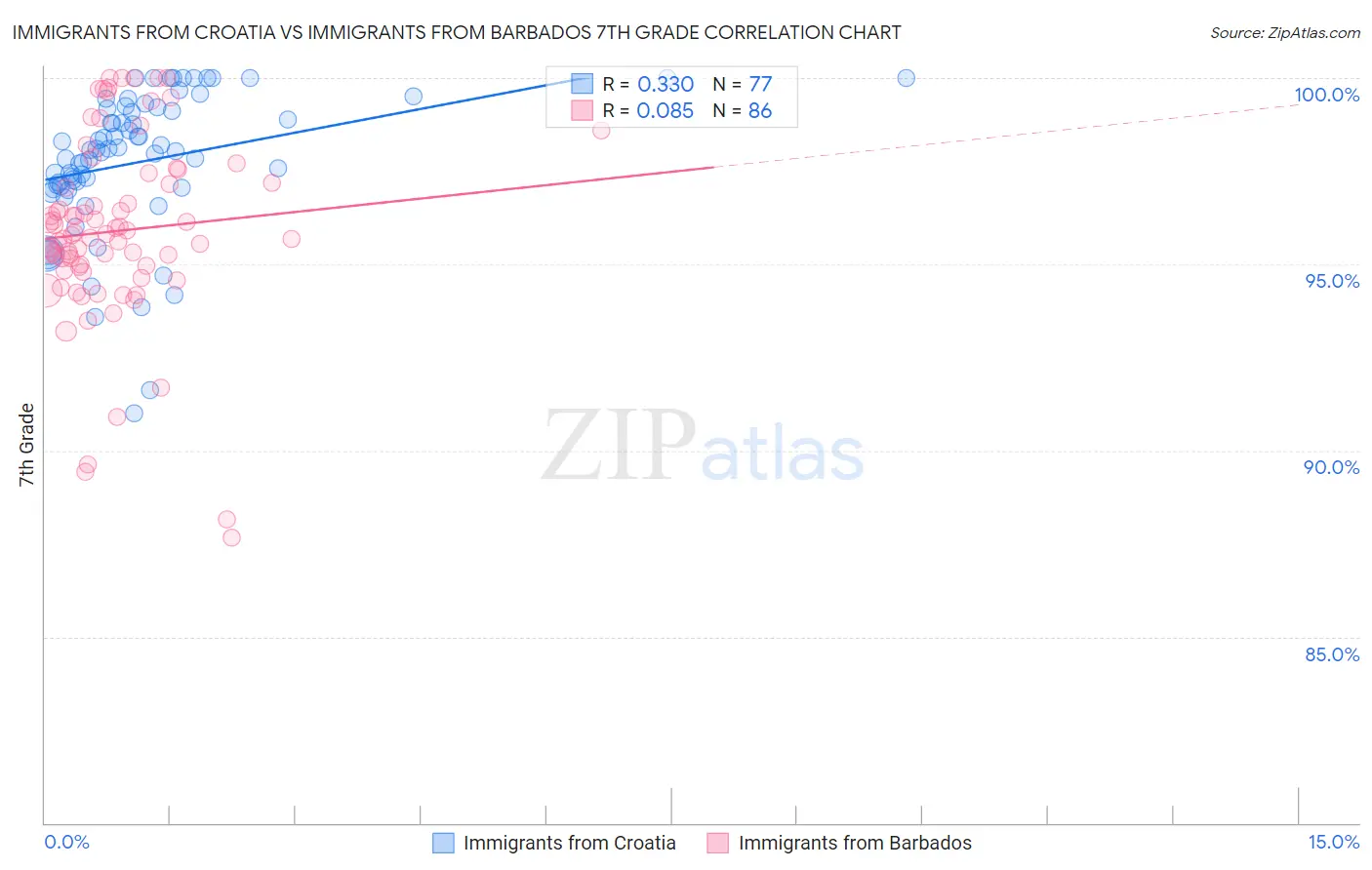 Immigrants from Croatia vs Immigrants from Barbados 7th Grade Correlation Chart