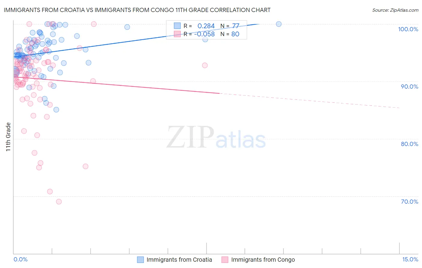 Immigrants from Croatia vs Immigrants from Congo 11th Grade Correlation Chart