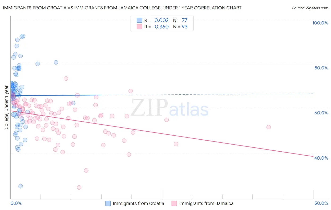 Immigrants from Croatia vs Immigrants from Jamaica College, Under 1 year Correlation Chart